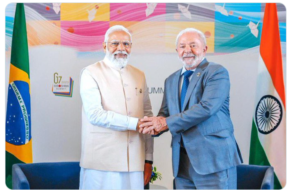 2025 ވަނަ އަހަރުގެ ޖީ7 ސަމިޓްގައި އިންޑިއާގެ ބޮޑުވަޒީރު ނަރެންދްރަ މޯދީ އާއި ބްރެޒިލްގެ ރައީސް ލޫލާ ދަ ސިލްވާ ބައްދަލުކުރެއްވުމަކީ، އެމެރިކާގެ ޓެރިފްތަކާ ދެކޮޅަށް ބްރިކްސް ގައުމުތަކުގެ އެއްބައިވަންތަކަން ދައްކުވައިދޭ ކަމެކެވެ. މި ބައްދަލުވުމުގައި ބްރެޒިލްގެ ރައީސް ވަނީ އެމެރިކާގެ ވިޔަފާރި ސިޔާސަތުތަކާ ދެކޮޅަށް އައު ސްތްރެޓެޖީއެއް އެކުލަވާލުމަށް ރާވާފައިވާކަން ހާމަކުރައްވާފައެވެ.