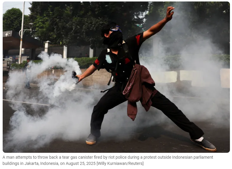 އިންޑޮނޭޝިއާގައި އާންމުން މަގުތަކަށް ނުކުތީ، އިންޑޮނޭޝިއާގެ އިޤްތިޞާދީ ހާލަތު ދަށްވެފައިވާ ދަނޑިވަޅެއްގައި ޕާލިމެންޓް މެންބަރުންނަށް ލިބޭ މުސާރައިގެ އިތުރުން 3،000 ޑޮލަރުގެ ހައުސިންގ އެލަވަންސެއް ދޭން ފާސްކުރުމާ ގުޅިގެންނެވެ. މި އެލަވަންސަކީ އިންޑޮނޭޝިއާގެ އެކި ސަރަހައްދުތަކުގައި އާންމުންނަށް މަހު މުސާރައަށް ލިބޭ އަދަދަށް ވުރެން 10 ނޫނީ 20 އިންސައްތަ ބޮޑު އަދަދެކެވެ.
