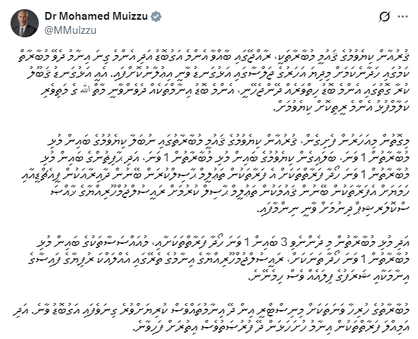 މިއަހަރުން ފެށިގެން ކީރިތި ޤުރްއާން ކިޔެވުމުގެ ޤައުމީ މުބާރާތުގެ، މުޅި މުބާރާތުން 1ވަނަ ހޯދާ ފަރާތްތަކަށް ޕީ.އެޗް.ޑީ. ހާސިލުކުރުމާ ހަމައަށް ތަޢުލީމު ހާސިލުކުރުމަށް ޚާއްޞަ ސްކޮލަރޝިޕެއް ދެއްވުމަށާއި، މި ވަނަތަކަށް އެއްލައްކަ ރުފިޔާގެ ފައިސާގެ އިނާމެއް ދެއްވުމަށް ރައީސުލްޖުމްހޫރިއްޔާ ޑޮކްޓަރ މުޙައްމަދު މުޢިއްޒު މިއަދު ނިންމަވައިފިއެވެ. އެ މަނިކުފާނު މިގޮތަށް ނިންމެވިކަން އިޢުލާނުކުރައްވާފައިވަނީ މީސްމީޑިއާގެ އެކްސް މެދުވެރިކުރައްވައި ހިއްސާކުރެއްވި ޕޯސްޓެއްގައެވެ.