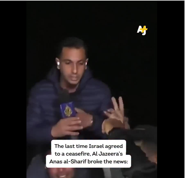 މީގެ ކުރިން ޖެނޮސައިޑް ނިންމަން ޖަނަވަރީ މަހު އެއްބަސްވިއެވެ. އެ އެއްބަސްވުން ތަންފީޒު ކުރަން ފެށި ޚަބަރު ގެނަސްދިނީ އެހެން ނޫސްވެރިއެއްގެ ކޮނޑުމަތީގައި އިނދެގެން އަލްޖަޒީރާގެ ނޫސްވެރިޔާ ޝަހީދު އުންސުއް ޝަރީފް (ފޮޓޯގައި) އެވެ. ޔަހޫދީން ވަނި އޭނާ ލައިވް ކޮށް ރިޕޯޓް ކުރަމުން ދަނިކޮށް ފަހުން ޝަހީދު ކޮށްލާފައެވެ.