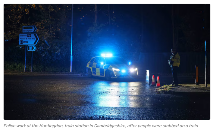 މި ހަމަލާ ހިނގާފައި ވަނީ ލަންޑަންގެ އުތުރުން ގާތްގަނޑަކަށް 120 ކިލޯމީޓަރު ދުރުގައި އޮންނަ ހަންޓިންގްޑަން އަށް ދަތުރުކުރަމުން ދިޔަ ރޭލެއްގަ އެވެ. ފުލުހުންނަށް މިކަމުގެ ރިޕޯޓު ލިބުނީ ރޭގަނޑު 7:39 ހާއިރު އެވެ. ކެމްބްރިޖްޝަޔާ ކޮންސްޓަބިއުލަރީގެ ހަތިޔާރު އެޅި ފުލުހުން ވަގުތުން ހަރަކާތްތެރިވެ، ހަމަލާ ދިން ކަމަށް ތުހުމަތުކުރެވޭ ދެ މީހުން ހައްޔަރުކުރީ ހަންޓިންގްޑަން ސްޓޭޝަނުންނެވެ.