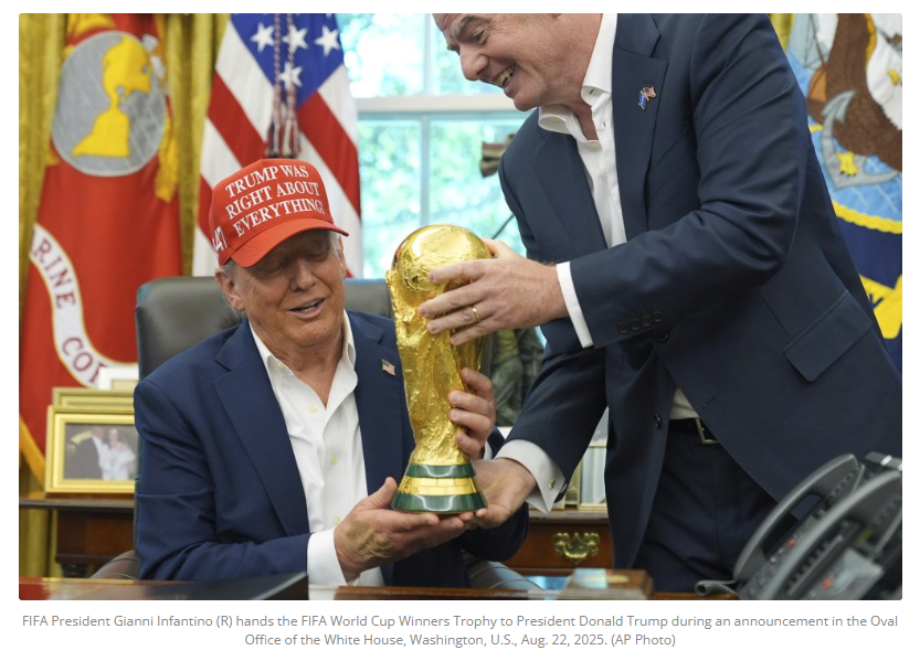 އެމެރިކާގެ ރައީސް ޑޮނަލްޑް ޓްރަމްޕް އަމިއްލައަށް ޕްރޮޕެގެންޑާ ކުރުމަށް ދުނިޔޭގެ ހަނގުރާމަތައް ހުއްޓުވުމަށް މަސައްކަތް ކުރާ ކަމަށް ދެއްކުމުން ވެސް ނޯބެލް ސުލްހައިގެ އިނާމަށް ނަން ހުށަހެއް ނޭޅުނެވެ. ނަމަވެސް، ދުނިޔޭގެ ފުޓުބޯޅައިގެ އެންމެ ބޮޑު ޖަމްޢިއްޔާ ކަމަށްވާ ފީފާއިން ޓްރަމްޕަށް ސުލްހައިގެ އިނާމެއް ދިނުމަށް ތައްޔާރުވަމުންދާ ކަމުގެ ވާހަކަތަކެއް ވަނީ ތިލަވެފައެވެ. ފީފާގެ ރައީސް ޖިއާނީ އިންފެންޓީނޯގެ މި މަސައްކަތްތަކުގެ ސަބަބުން، ފުޓުބޯޅަ، ދުނިޔޭގެ ސިޔާސަތާއި ޑިޕްލޮމެސީގެ މައިދާނަށް ވަދެގެންދާ މަންޒަރު ފެނިގެންދެއެވެ.