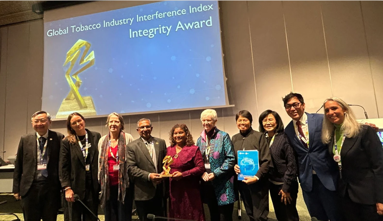 ދުންފަތް ކޮންޓްރޯލް ކުރުމަށް އެކި ޤައުމުތަކުގައި ތަންފީޒުކުރާ ސިޔާސަތުތަކާއި، އެ ސިޔާސަތުތަށް ތަންފީޒުކުރާގޮތް ދިރާސާކުރާ، ބައިނަލް އަޤްވާމީ ޖަމްޢިއްޔާއެއް ކަމުގައިވާ، "ގްލޯބަލް ސެންޓަރ ފޮރ ގުޑް ގަވަރނަންސް އިން ޓޮބޭކޯ ކޮންޓްރޯލް (ޖީ.ޖީ.ޓީ.ސީ)" އިން ރާއްޖެއަށް ދިނީ އެ ޖަމްޢިއްޔާއިން ދެމުން އަންނަ "އިންޓެގްރިޓީ އެވޯރޑް"އެވެ.