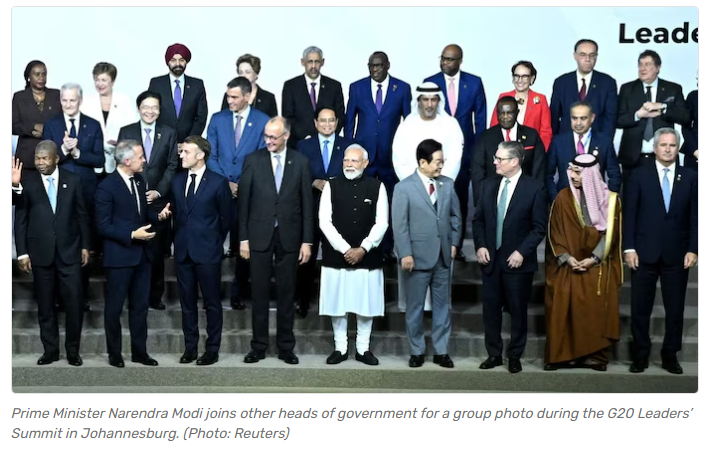 މިފަހަރުގެ ޖީ20 ލީޑަރުންގެ މަހާސިންތާއަކީ، އެފްރިކާގައި ބޭއްވި ފުރަތަމަ ޖީ20 މަހާސިންތާ އެވެ. މި ތާރީޚި މަހާސިންތާގައި ދުނިޔެއަށް ދިމާވެފައިވާ ގޮންޖެހުންތަކަށް ހައްލު ހޯދުމަށް ބައިވެރި ޤައުމުތަކުގެ ލީޑަރުން ވަނީ ގުޅިފައިވާ ބަޔާނަކަށް އެއްބަސްވެ އެކަމަށް އާންމު ހޭލުންތެރިކަން އިތުރުކުރުމަށް ގޮވާލާފައެވެ.