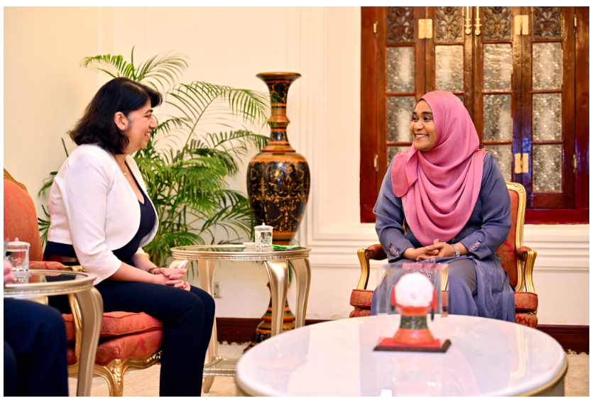 ރައީސުލްޖުމްހޫރިއްޔާގެ އަނބިކަނބަލުން ސާޖިދާ މުޙައްމަދުގެ އަރިހަށް، އިނގިރޭސިވިލާތުގެ ފޮރިން، ކޮމަންވެލްތު އެންޑް ޑިވަލޮޕްމަންޓް އޮފީހުގެ ޕާލިމަންޓްރީ އަންޑަރ ސެކްރެޓަރީ އޮފް ސްޓޭޓް، މިނިސްޓަރ ސީމާ މަލްހޯތުރާ އިޙްތިރާމުގެ ޒިޔާރަތެއް ކުރައްވައިފިއެވެ. މި ރަސްމިއްޔާތު އޮތީ މިއަދު ހެނދުނު މުލީއާގޭގައެވެ.