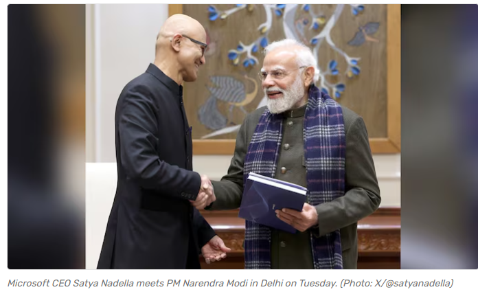 މައިކްރޮސޮފްޓްގެ ސީއީއޯ ސަތިޔާ ނަޑެއްލާ، އިންޑިއާގެ ބޮޑުވަޒީރު ނަރެންދުރަ މޯދީއާ ނިއުދިއްލީގައި ބައްދަލުކުރެއްވުމަށްފަހު، އިންޑިއާގެ އޭއައި-ފަސްޓް ޕްރޮގްރާމު އަވަސްކުރުމަށްޓަކައި 17.5 ބިލިއަން އެމެރިކާ ޑޮލަރުގެ ރެކޯޑް އިންވެސްޓްމަންޓެއް ކުައްވާާނެ ކަމަށް އިއުލާން ކުރައްވައިފިއެވެ. މިއީ މައިކްރޮސޮފްޓުން އޭޝިއާގައި މިހާތަނަށް ކުރާ އެންމެ ބޮޑު އިންވެސްޓްމަންޓެވެ.