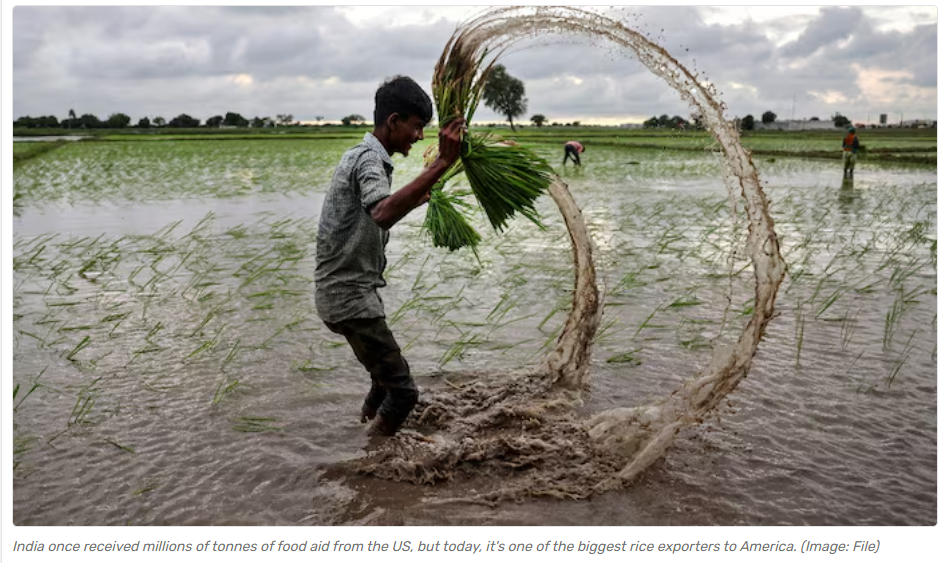 ކުރިން އިންޑިއާ އިން ބަރޯސާވީ، އެމެރިކާގެ "ފުޑް ފޯ ޕީސް" ޕްރޮގްރާމްގެ ދަށުން ބަނޑުހައި ހޫނުކަން ހުއްޓުވުމަށް އެތައް މިލިއަން ޓަނުގެ ގޮދަނުގެ އެހީ ބަލައި ގަތުމަށެވެ. އިންޑިއާގައި ދަނޑުވެރިކަމުގެ އިންގިލާބެއް އައިސް، މިހާރު ވަނީ އަހަރަކު 22 މިލިއަން ޓަނަށްވުރެ ގިނަ ހަނޑޫ އެކްސްޕޯޓުކުރަން ފަށާފައެވެ. 2024 ވަނަ އަހަރު އެކަނިވެސް އިންޑިއާއިން އެމެރިކާއަށް 380 މިލިއަން ޑޮލަރުގެ ހަނޑޫ އެކްސްޕޯޓުކުރިއެވެ.