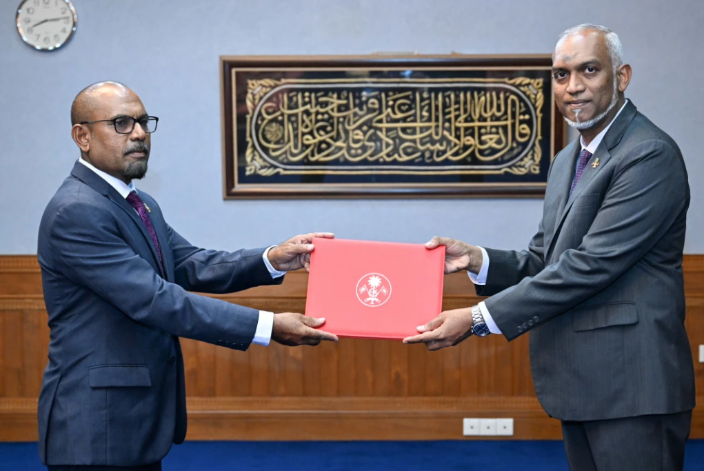 ވަޒީރަށް މަޤާމުގެ ފަތްކޮޅު ދެއްވުމަށް ބޭއްވެވި ރަސްމިއްޔާތު އޮތީ މިރޭ އިރާކޮޅުގެ ވަގުތެއްގައި، ރައީސުލްޖުމްހޫރިއްޔާގެ އޮފީހުގައެވެ.